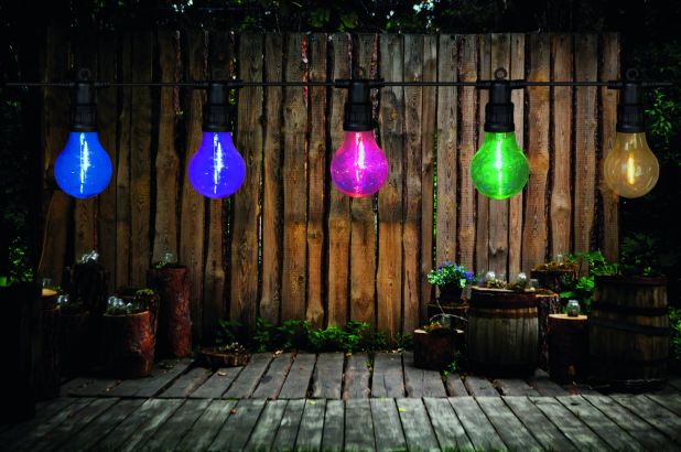 Deze party lichtslinger met 10 multi-filament lampen brengt kleur en sfeer in de tuin, op het terras of balkon. De gekleurde lichtbronnen zorgen voor een levendige ambiance – ideaal voor feestjes en gezellige zomeravonden. Dankzij het connectable-systeem is de slinger flexibel uit te breiden tot wel 50 lampen op één trafo.